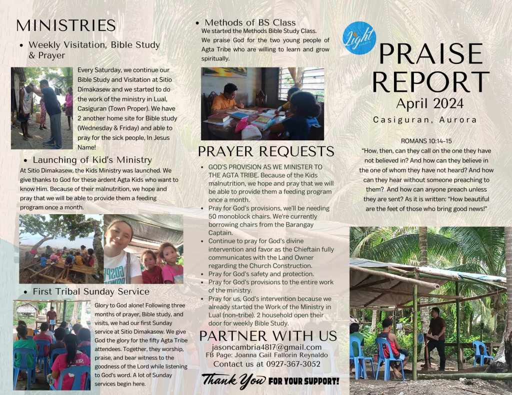 - Financial Provision for Missionaries: Pray that Jason and Joanna receive financial support to effectively sustain and expand their missionary work.